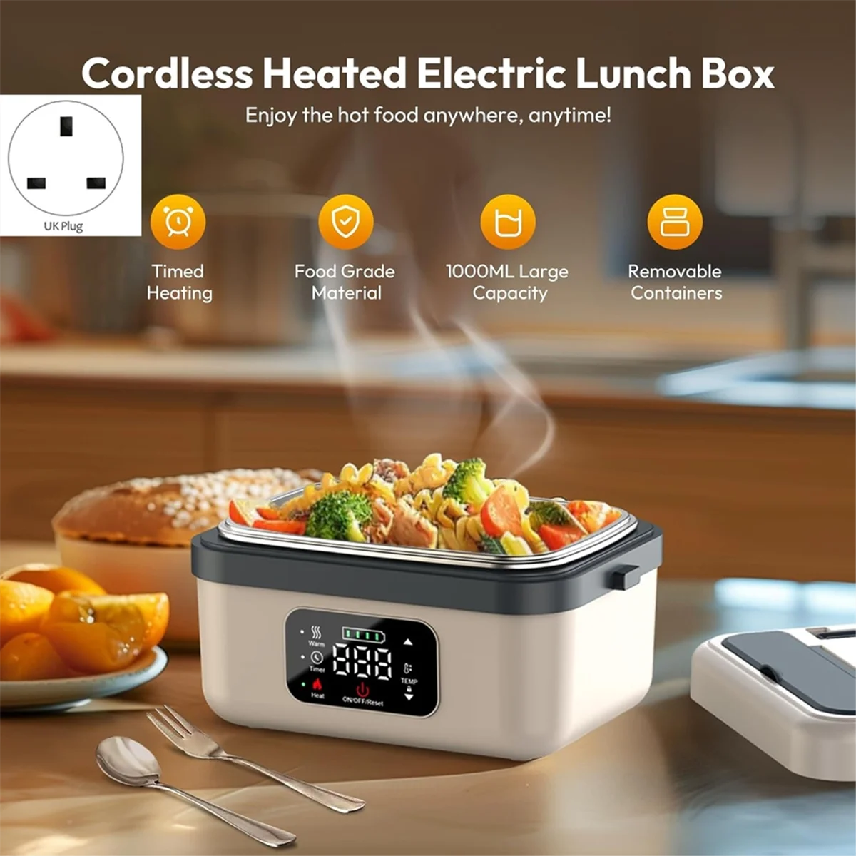 Cordless Electric Lunch Box 1L for Adults Self-Heating Food Warmer Portable for Indoor Outdoor Office Camping UK Plug